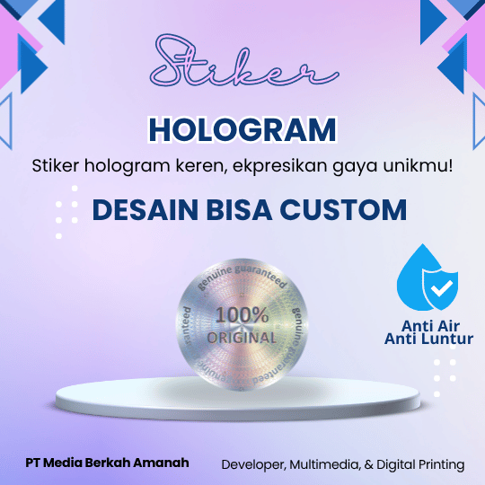 - Sticker silver hologram permukaan yang silver dengan warna pelangi tidak mudah sobek lebih tahan air dan minyak , biasa digunakan untuk label kemasan kosmetik.